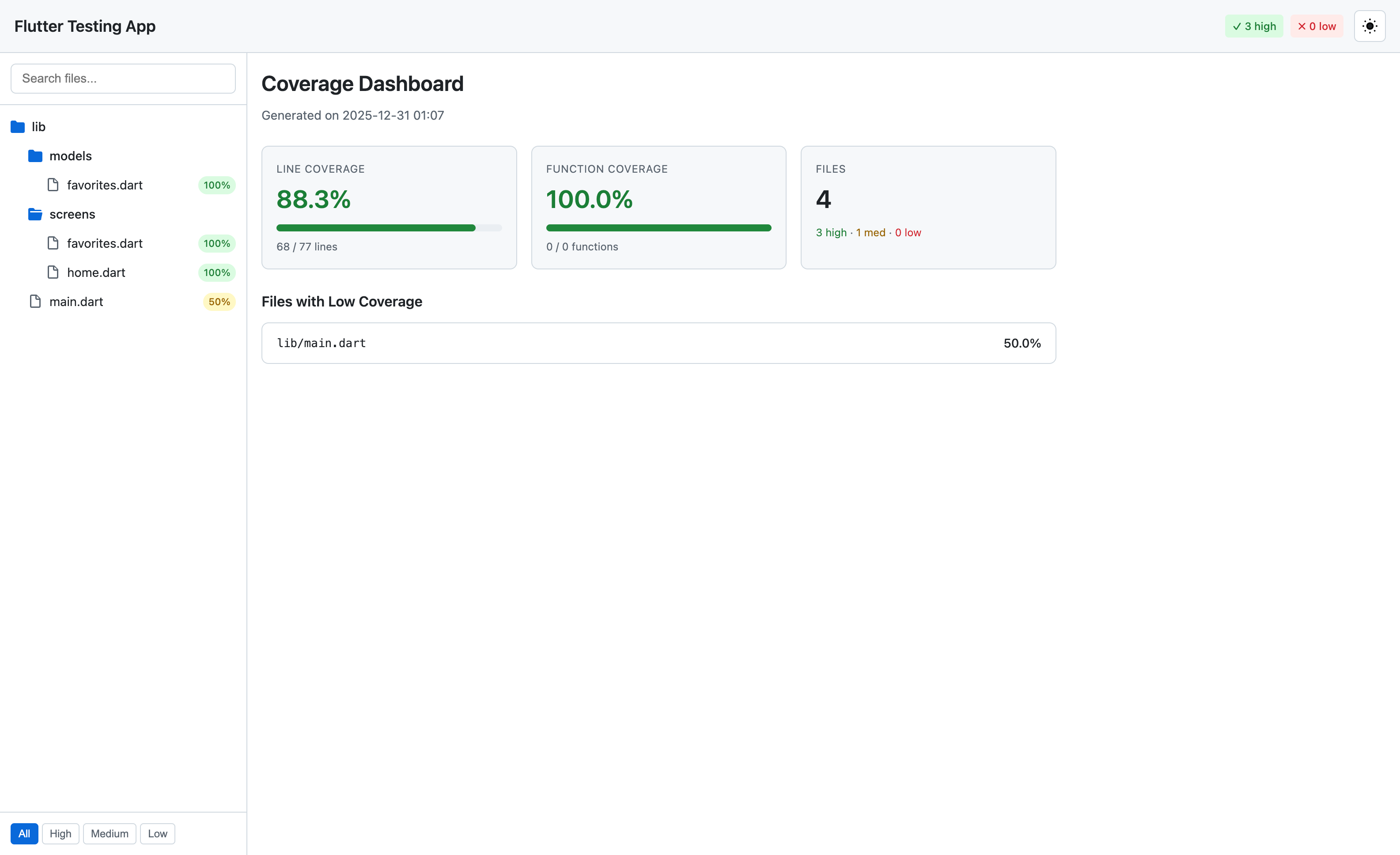 Example of a Flutter Coverage Report HTML file
